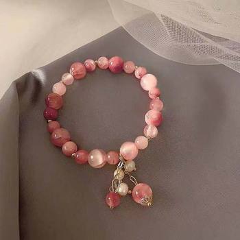 Korean Pink Crystal Stone Bracelet For Women Girls Elegant Handmade Beaded Strand Bracelets Bangles Wristband Jewelry Gifts