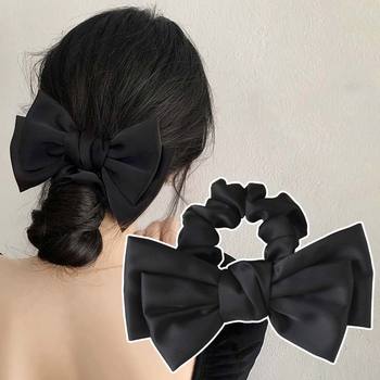 Korean Solid Color Satin Bow Hair Rope for Women Girls Sweet Elastic Ponytail Headband Rubber Band Headwear Hair Accessories