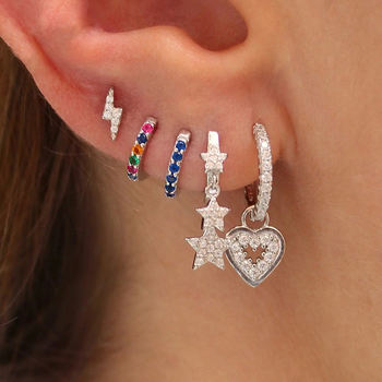 5PCS New Arrival Silver Color Star Heart Pendant Hoop Earrings Fashion Stainless Steel Huggie Earrings Jewelry Set For Women