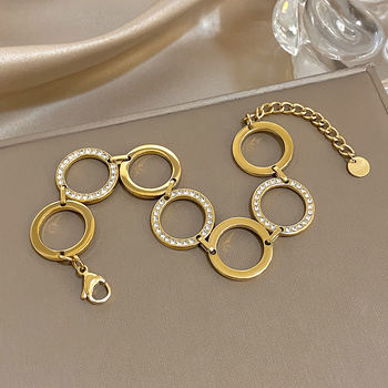 Chic Hollow Geometric Circle Rhinestone Bracelet for Women Elegant Gold Plated Stainless Steel Chunky Bracelets Jewelry Gifts
