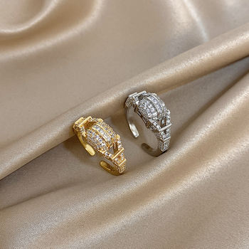 Greatera Cubic Zircon Filled Iron Tower Shape Cuff Ring Delicacy Niche Design Personality Versatile Women’s Jewelry Accessories