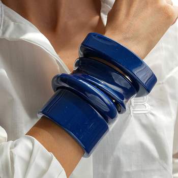 DIEZI 4 Style Fashion Geometric Blue Acrylic Resin Bangles Exaggeration Punk Cuff Wide Bangles Bracelets For Women Men Jewelry
