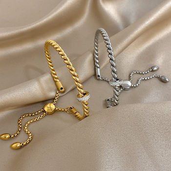 Greatera Vintage Zircon Twist Shape Adjustable Chain Women’s Bracelet Niche Design Stainless Steel Temperament Bangle Jewelry
