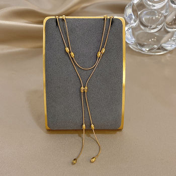 Greatera Long Tassels Beaded Necklace For Wome Plated Gold Stainless Steel Original Design Advanced Unique Temperament Jewelry
