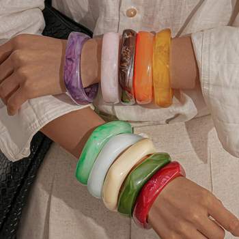 DIEZI 3 Style Bohemian Geometric Beige White Acrylic Resin Bangles Exaggeration Fashion Wide Bangles Bracelets For Women Men