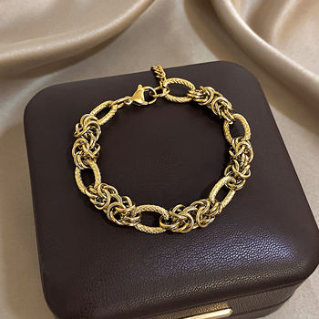 Greatera Simple European American Splice Chain Plated Gold Bangle For Women Classic Personality Popular Stainless Steel Bracelet