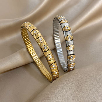 Greatera 54mm Two Tone Eye Shape Rhinestone Decoration Watch Strap Bracelet For Women Men Stainless Steel Design Bangle Jewelry