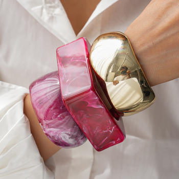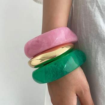 DIEZI Sweet Cool Punk Pink Green Acrylic Resin Wide Bangles Vintage Fashion Gold Color Bracelet Bangle Women Men Girls Jewelry