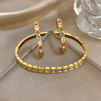 Greatera Trendy Full Circle of Colorful Cubic Zircon Filled Hoop Earrings Bracelet Stainless Steel Women’s Combination Jewelry