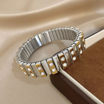 Elegant Rhinestone Bead Bracelet for Women Trendy Chunky Gold Silver Color Stainless Steel Wristband Bracelets Jewelry Gifts