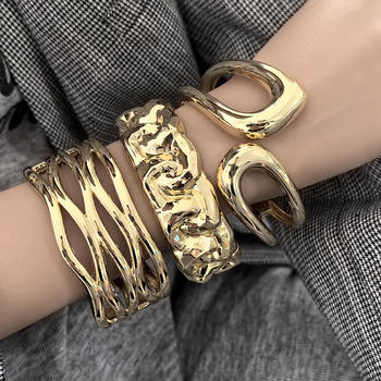 DIEZI 4 Style Exaggerated Vintage Irregular Metal Bangles Fashion Hip Hop Geometric Bangles Bracelet For Women Men Party Jewelry