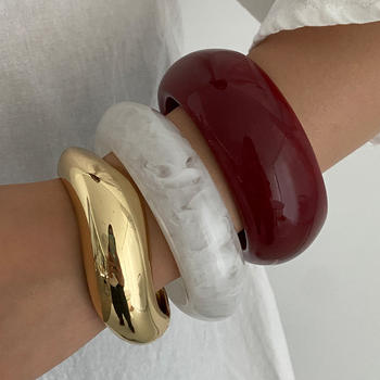 DIEZI 3 Style Bohemian Vintage Geometric Bangles Fashion Punk Wine red White Acrylic Resin Wide Bracelets For Women Men Jewelry