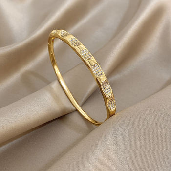Greatera Concave Interval Bracelet Light Luxury Cubic Zircon Filled Inlaid Versatile Bangle High Quality Copper Plated Gold Gift