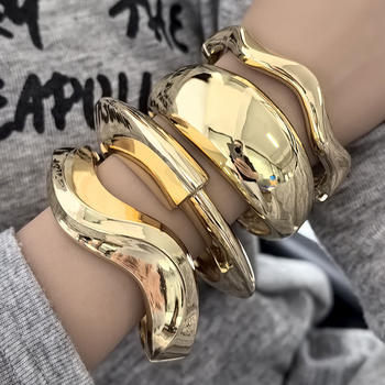 Irregular Geometric Stainless Steel Cuff Bangle Bracelets for Women Glossy Chunky Gold Color Wide Bracelet Waterproof Jewelry