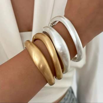 DIEZI Exaggerated Irregular Acrylic Resin Bangles Hip Hop Geometric Matte Gold Color Metal Bangles Bracelet For Women Men