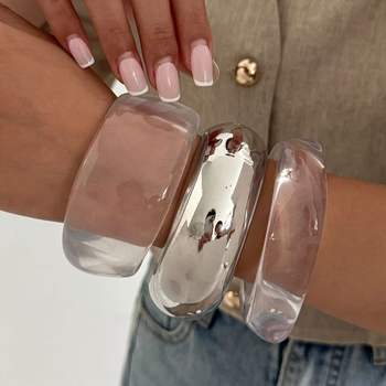 DIEZI 3 Style Vintage Punk Geometric Bangles Jewelry Fashion Red Clear Acrylic Resin Wide Bangles Bracelets For Women Men
