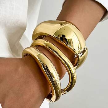 DIEZI Exaggeration Geometric Cuff Wide Bangles Fashion Hip Hop Gold Silver Color Metal Wide Bangles Bracelets For Women Men