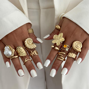 DIEZI 12pcs/set Baroque Vinatge Water Drop Rings For Women Men Punk Gold Silver Color Geometric Knuckle Joint Ring Jewelry