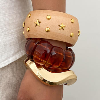 DIEZI Vintage Star Round Wood Bangles Fashion Hip Hop Punk Irregular Geometric Wide Bangles Bracelet For Women Men Jewelry