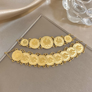 Greatera Gradually Widening Round Animal Pattern Stainless Steel Bracelet Gold Color Lobster-claw-clasps Delicacy Women’s Bangle