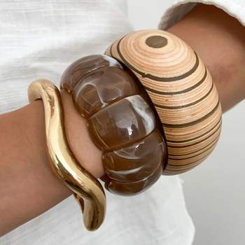 DIEZI Exaggerated Vintage Brown Wood Wide Bangles Fashion Round Geometric Acrylic Resin Bracelet Bangles For Women Men Jewelry
