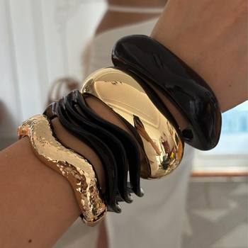 DIEZI 3 Style Punk Geometric Acrylic Resin Wide Bangles Vintage Fashion Gold Color Metal Bracelet Bangle For Women Men Jewelry