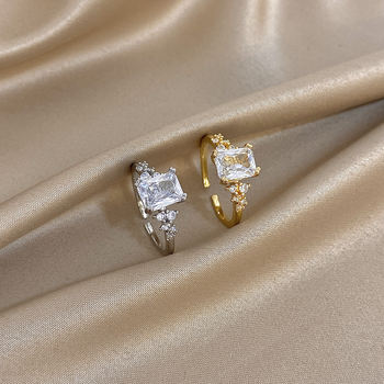 Greatera White Square Rhinestone Decoration Women’s Cuff Ring Delicacy Small Design Copper Plated Gold Temperament Jewelry Gift