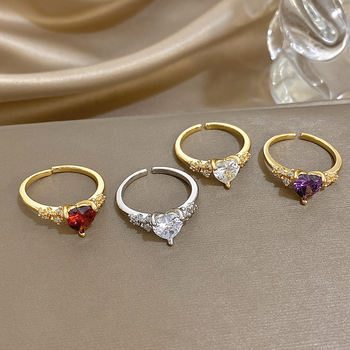 Greatera Copper Plated Gold Design Women’s Cuff Ring Personality Colorful Heart Rhinestone Inlaid Design Popular Jewelry Party