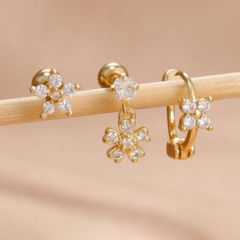 3PCS New Arrival Stainless Steel Flower Zircon Cartilage Piercing Earrings Set For Women Gold Color Stud Earring Luxury Jewelry