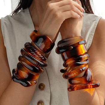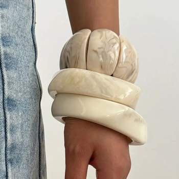 DIEZI 8 Style New Bohemian Beige White Acrylic Resin Bangles Exaggeration Fashion Geometric Wide Bangles Bracelets For Women Men