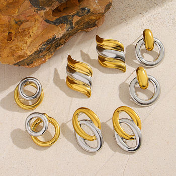 Greatera Two Tone Series Plated Gold Earrings For Women Classic Personality Stainless Steel Waterproof Hollow Out Jewelry Gifts