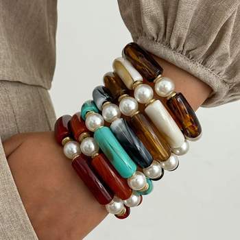 DIEZI 7 Colors Vintage Imitation Pearl Elastic Rope Bangles for Women Men Exaggerated Geometric Acrylic Resin Bracelet Jewelry