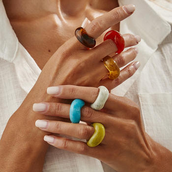 DIEZI Y2K Boho Resin Acrylic Irregular Geometric Finger Rings For Women Girls Men Simple New 6 Colors Knuckle Joint Ring Jewelry