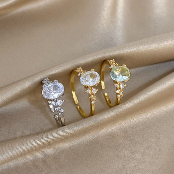 Greatera Colored Oval-shaped Adjustable Ring For Women Irregular Bone-shaped Cubic Zircon Filled Sun Flower Plated Gold Jewelry