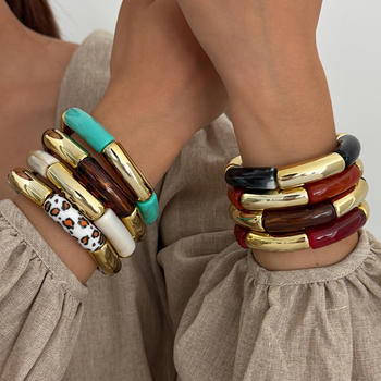 DIEZI 10 Style Ethnic Bohemian Geometric Acrylic Resin Bangles Fashion Light Khaki CCB Beads Bangles Bracelets For Women Men