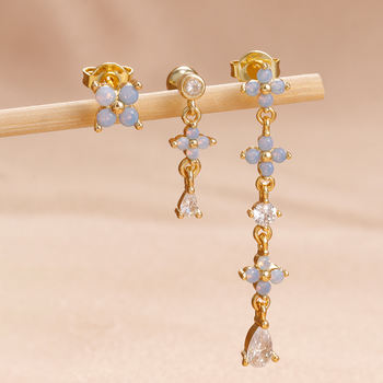 3PCS Luxury Blue Flower CZ Ear Stud Earrings Set For Women Exquisite Cubic Zirconia Stainless Steel Earring Fashion Jewelry