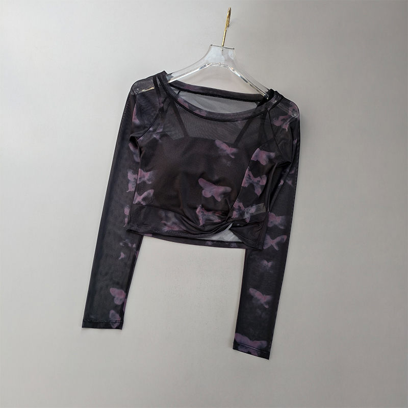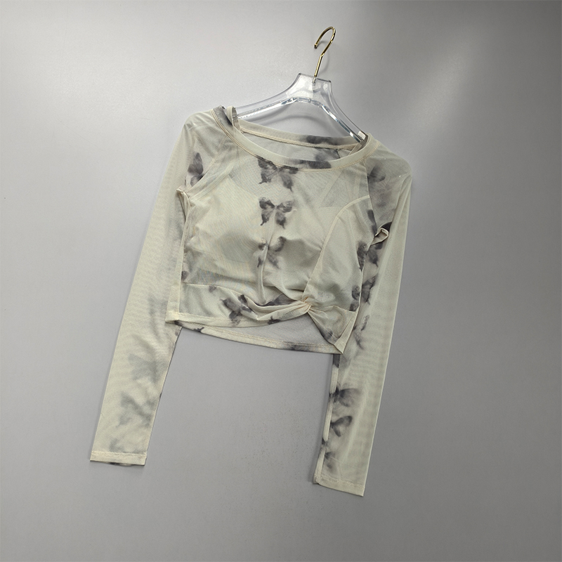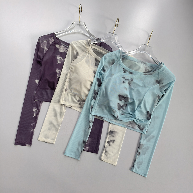 Advanced Mesh Fake Long Sleeved Shirts Women Fixed Chest Cushion Yoga Suit Quick Drying Breathable Slimming Fitness Top Clothing