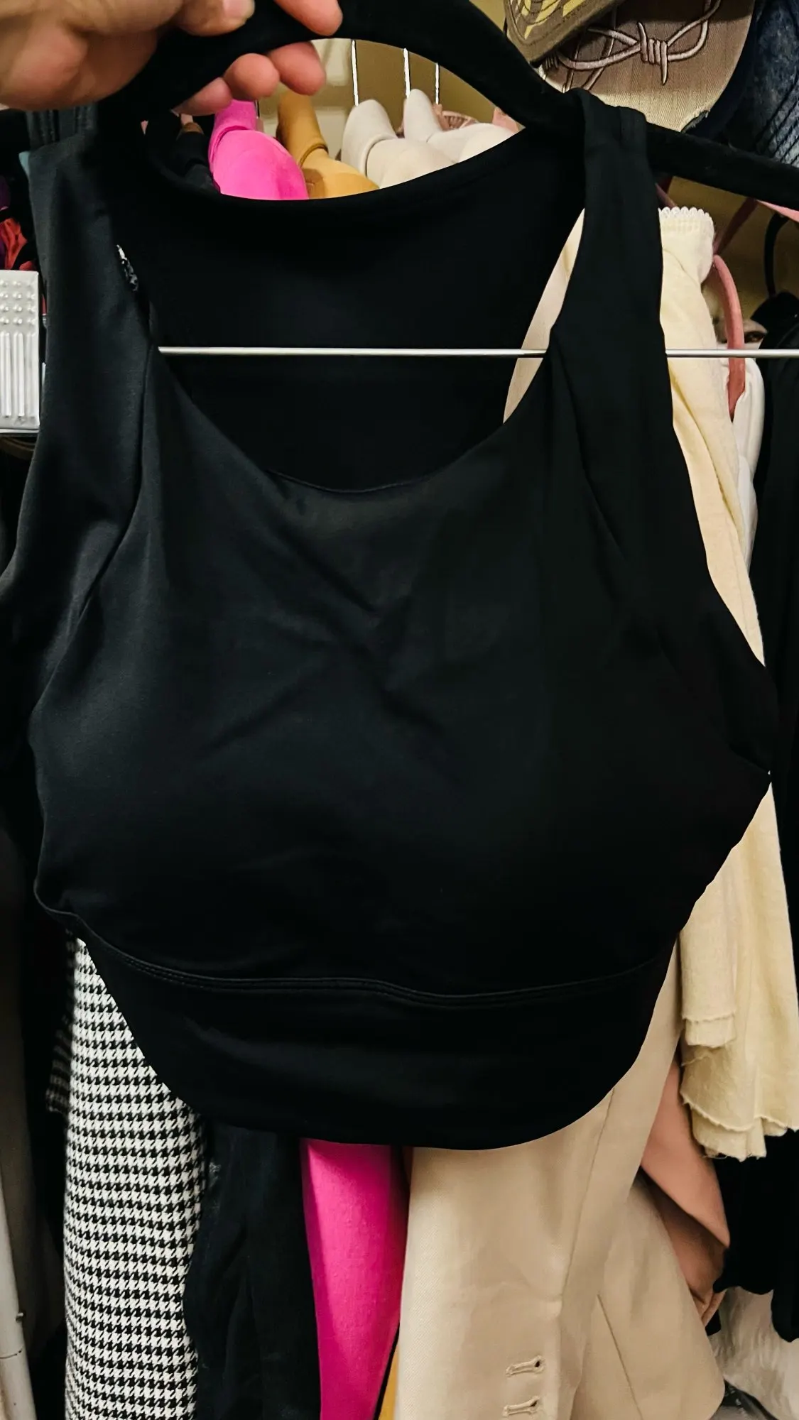 For ref i’m a 32a 173cm 62kg, it’s very tight which is what i was personally looking for but definitely size up if you have a wider chest. I typically don’t like bras with padding like this but it’s perfect— it’s not too thick and doesn’t look unnatural. The material is also super comfy overall, i’m definitely gonna buy more :d rlly rlly good for the price tysm ! !