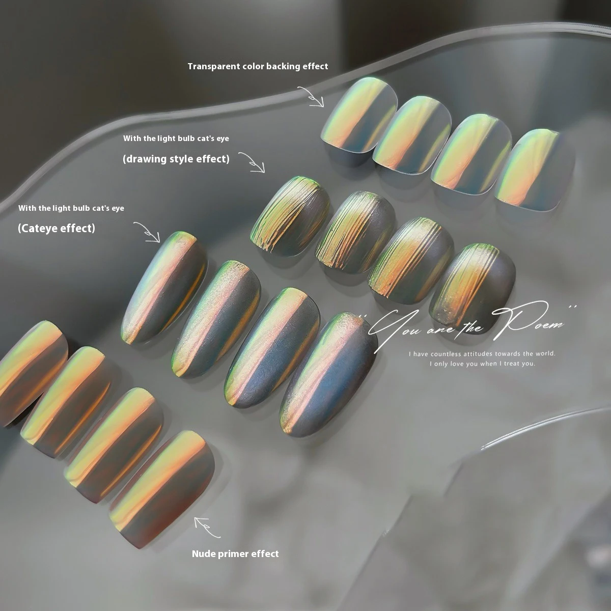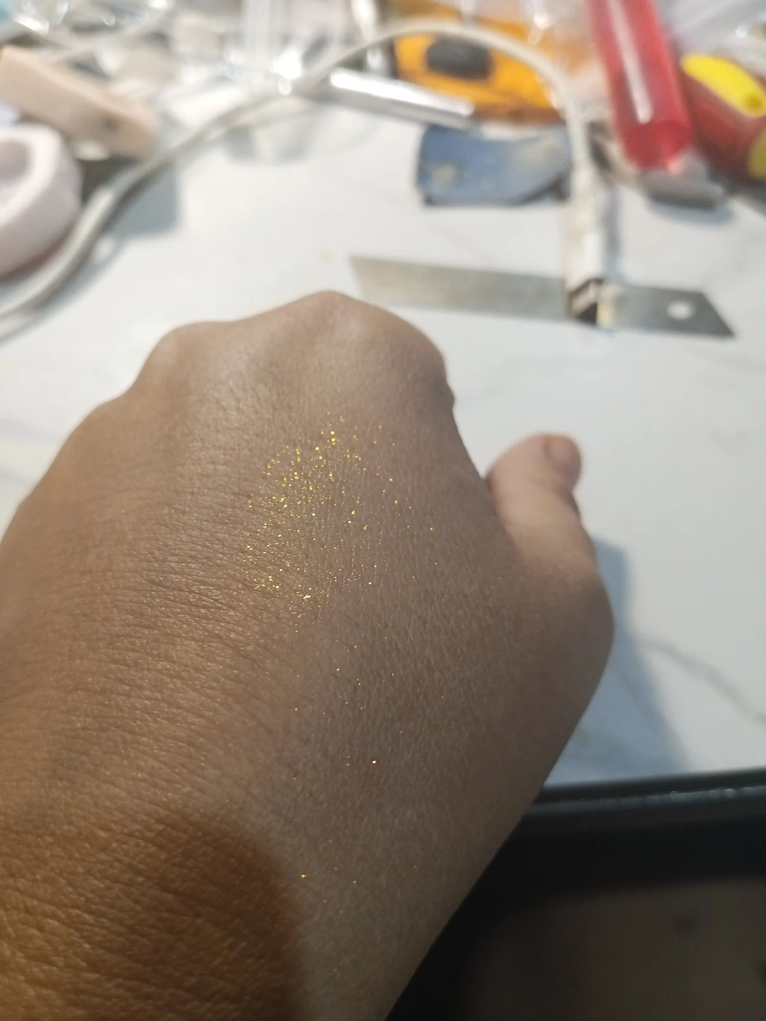 Incredibly shimmering! reminded of the setting sun 😍 I haven't tested the 'cat eye' effect yet, but as a primer it looks wonderful. 🤩 I will order here again) I recommend the store and the product; delivery < 2 weeks 😃