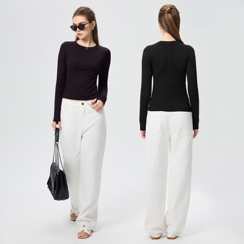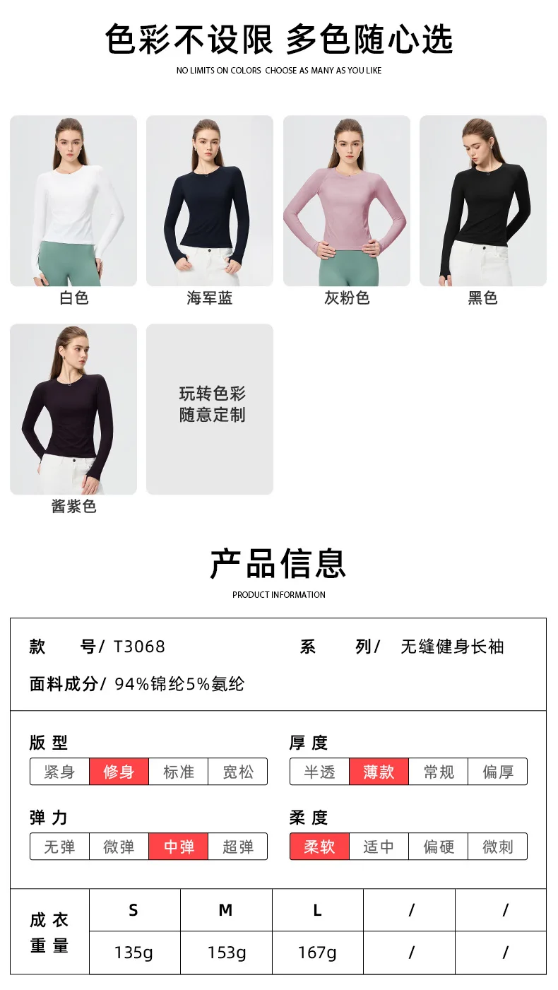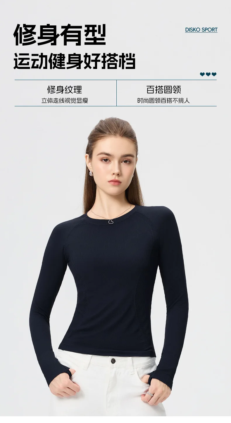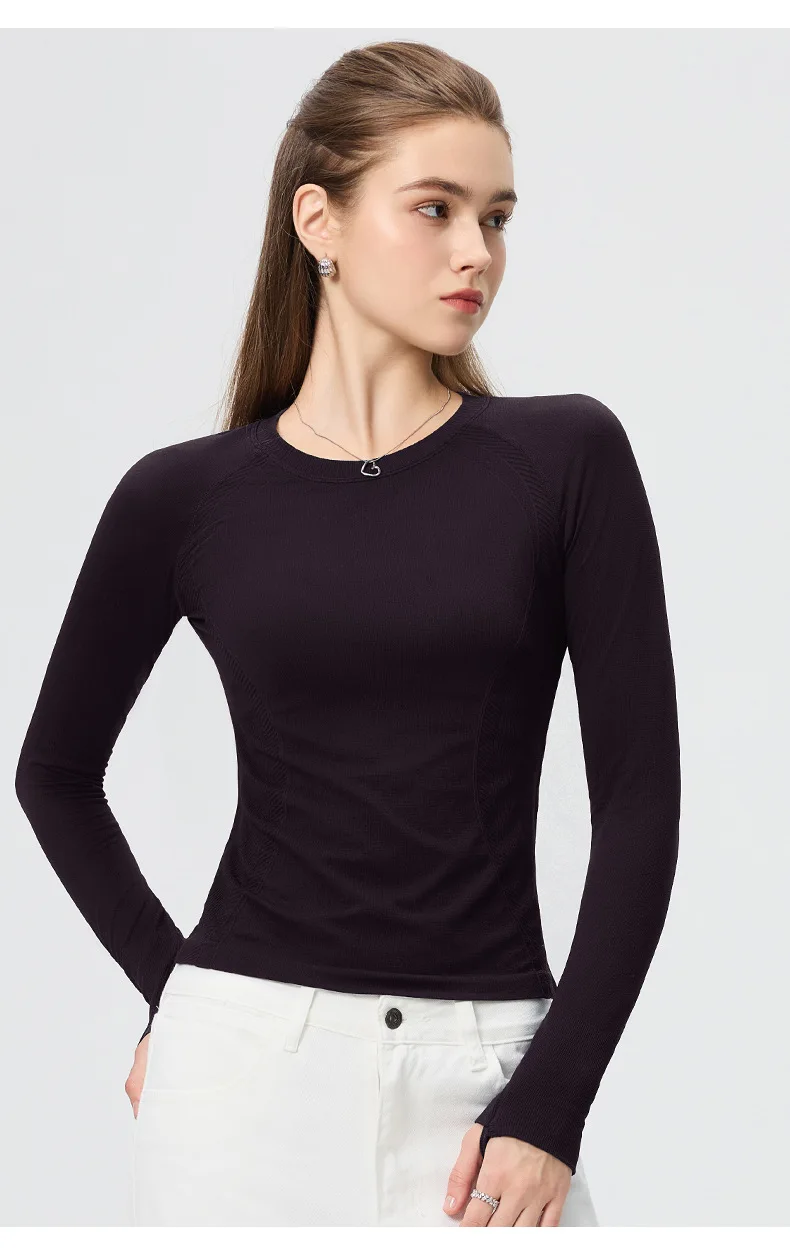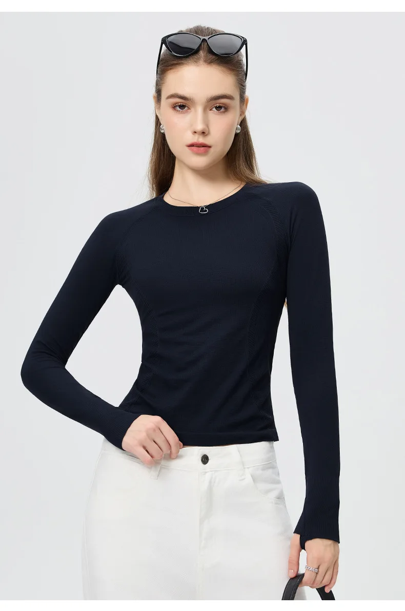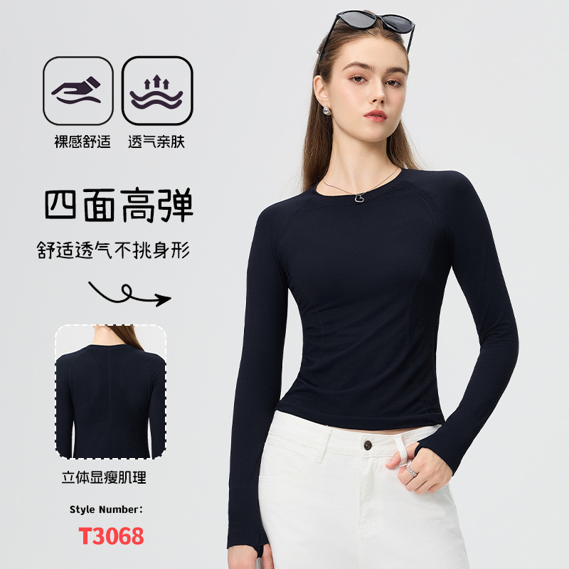 Autumn and winter new fitness tops T-shirt long-sleeved round neck slim-fitting outdoor fitness sports yoga clothes long sleeves
