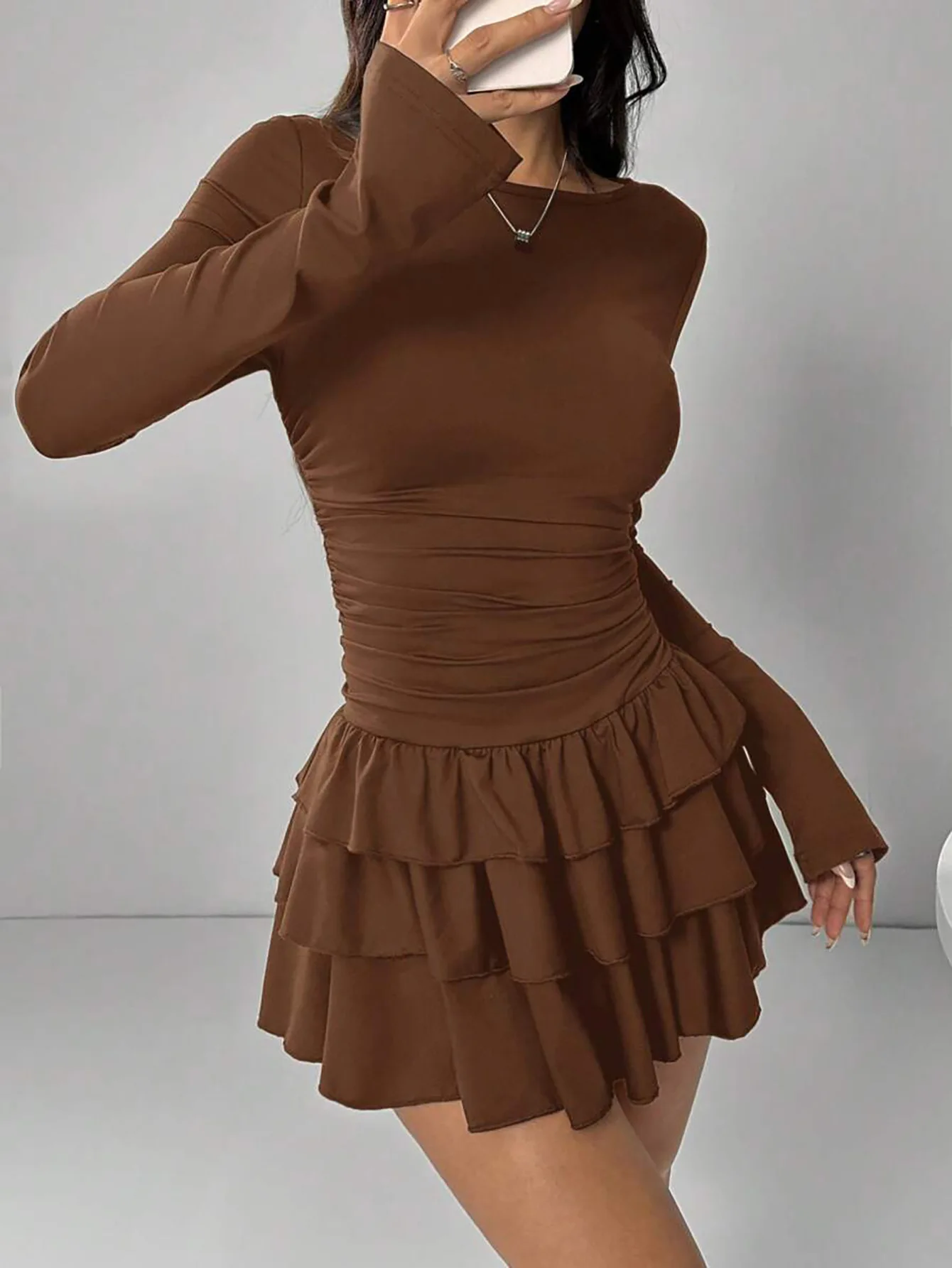 Autumn Elegant Long Sleeve O-neck Sexy Bodycon Solid Mini Prom Dress Women Outfit Elasticity Evening Party Festival Cake Dress