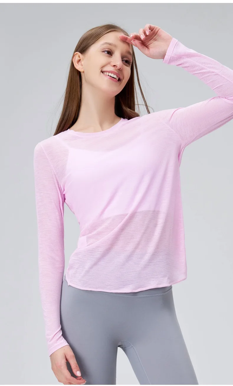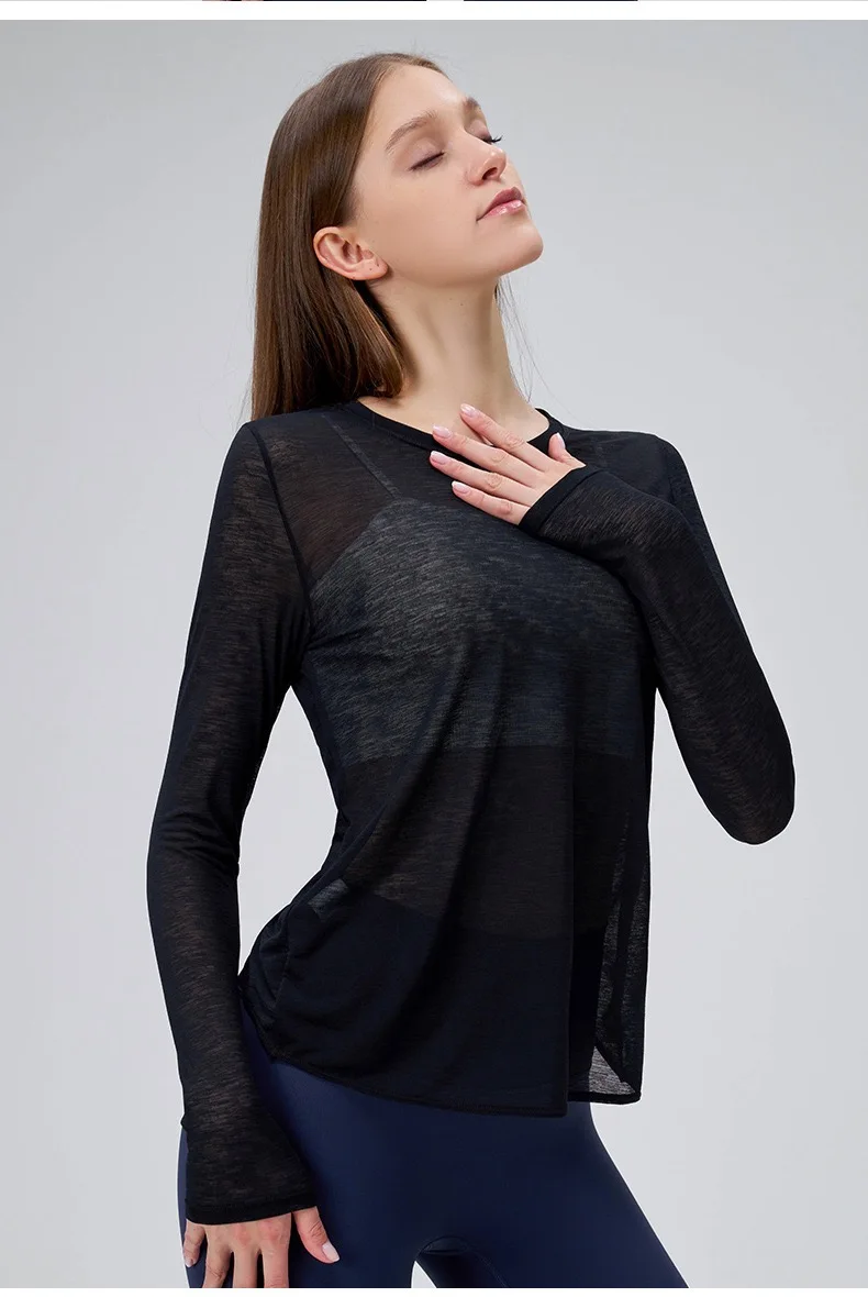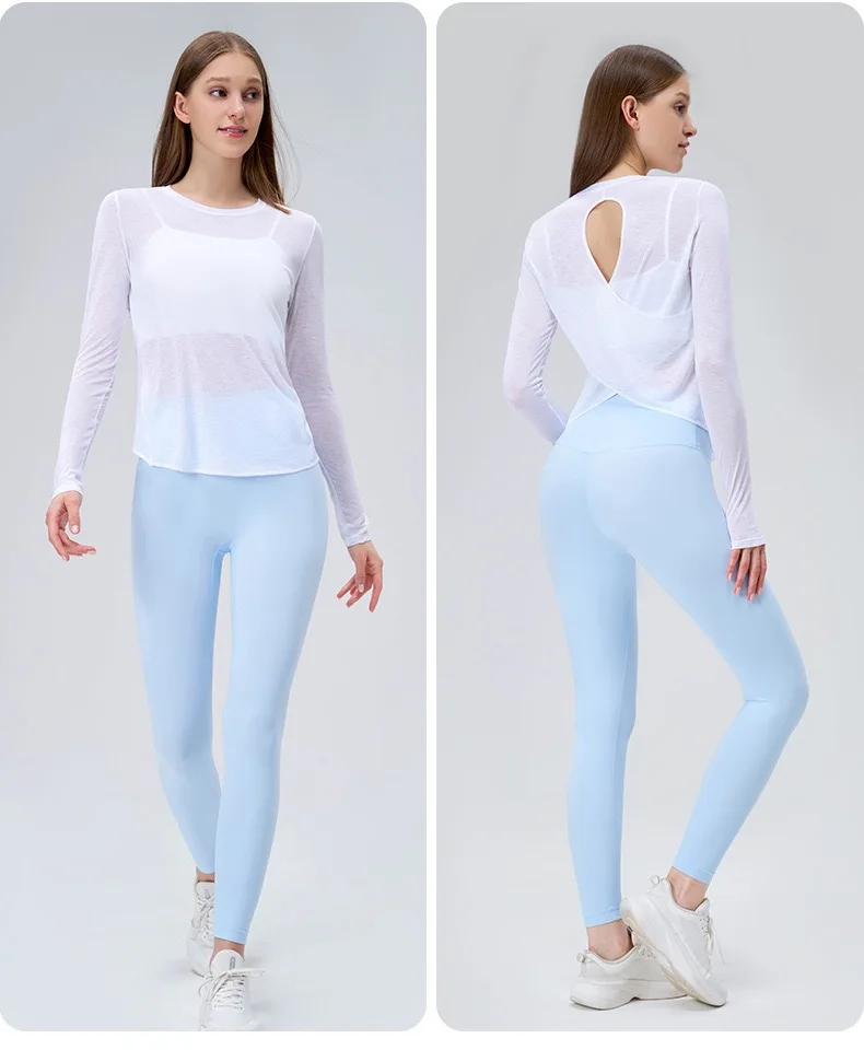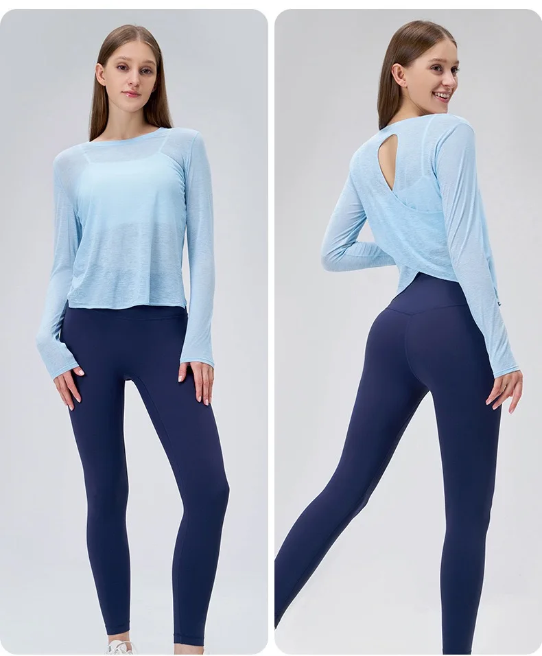 Autumn Thin Loose Long Sleeve Gym Breathable Yoga Blouse Hollow Beauty Back Running Cross Yoga Clothing Fitness Pilates Top Suit