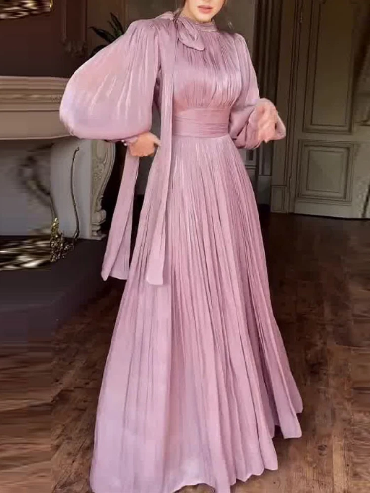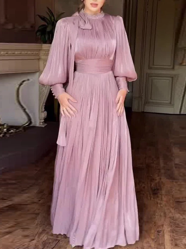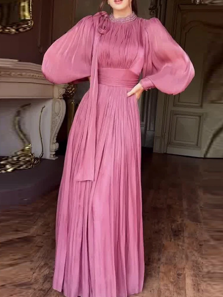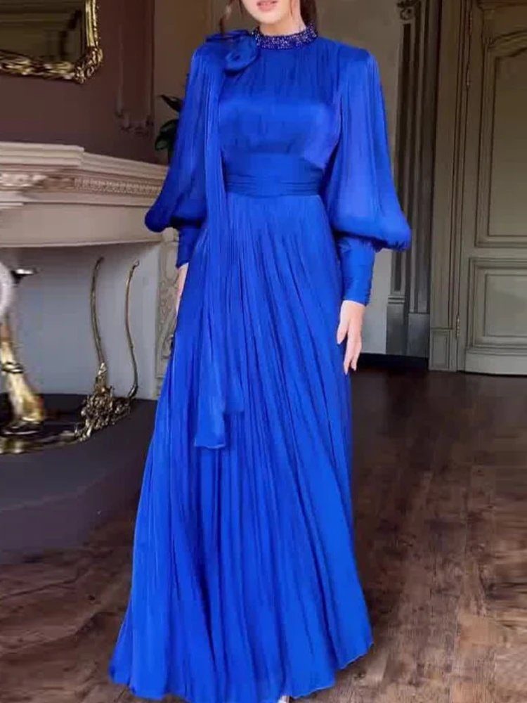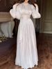 Autumn Winter Evening Dress Pleated Waist Cinched Long Puff Sleeve Dress A-line Rhinestones Vintage French Style Party Dresses