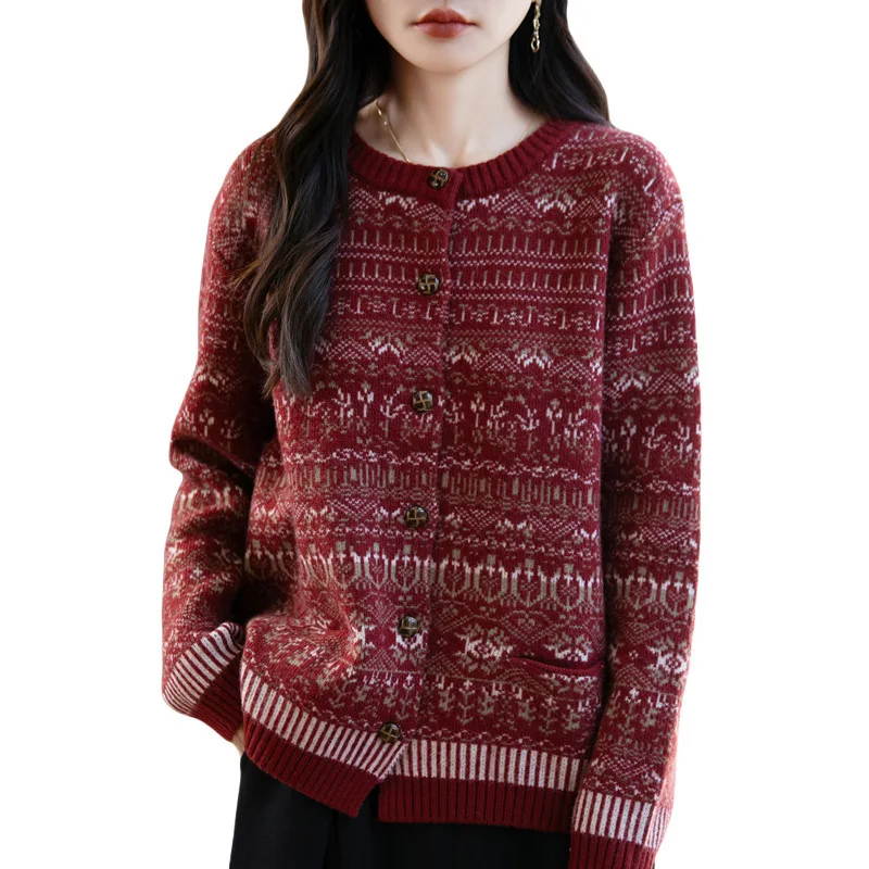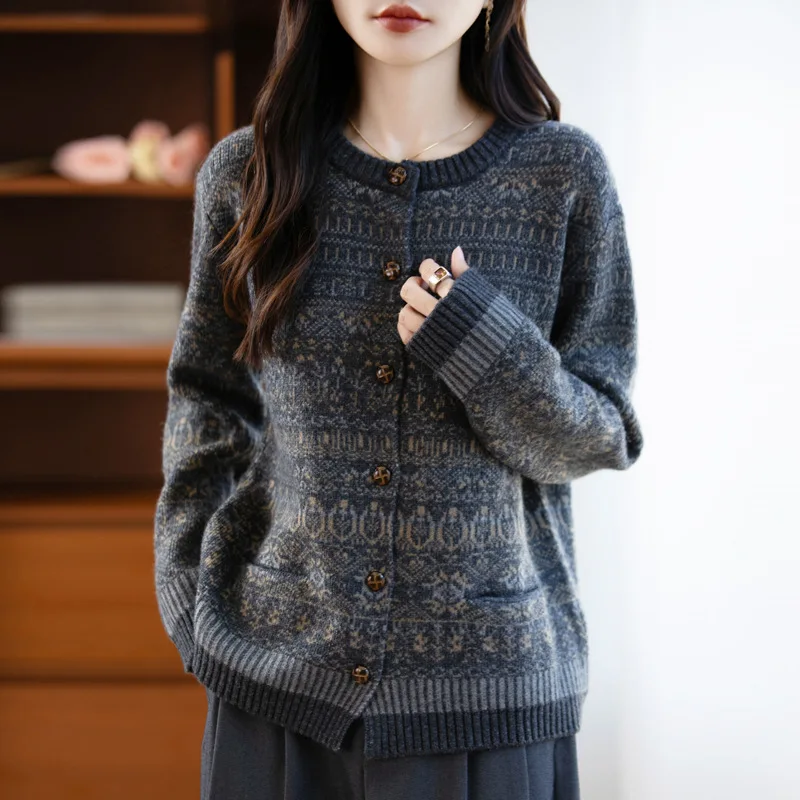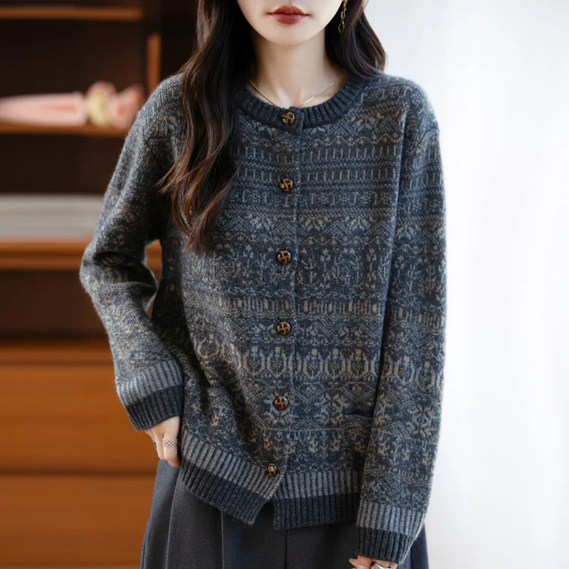 Autumn Winter Women Cardigans Thick Warm Wool Sweater Outerwear O-neck Long Sleeve Cashmere Knitted Jumper Loose Korean Fashion