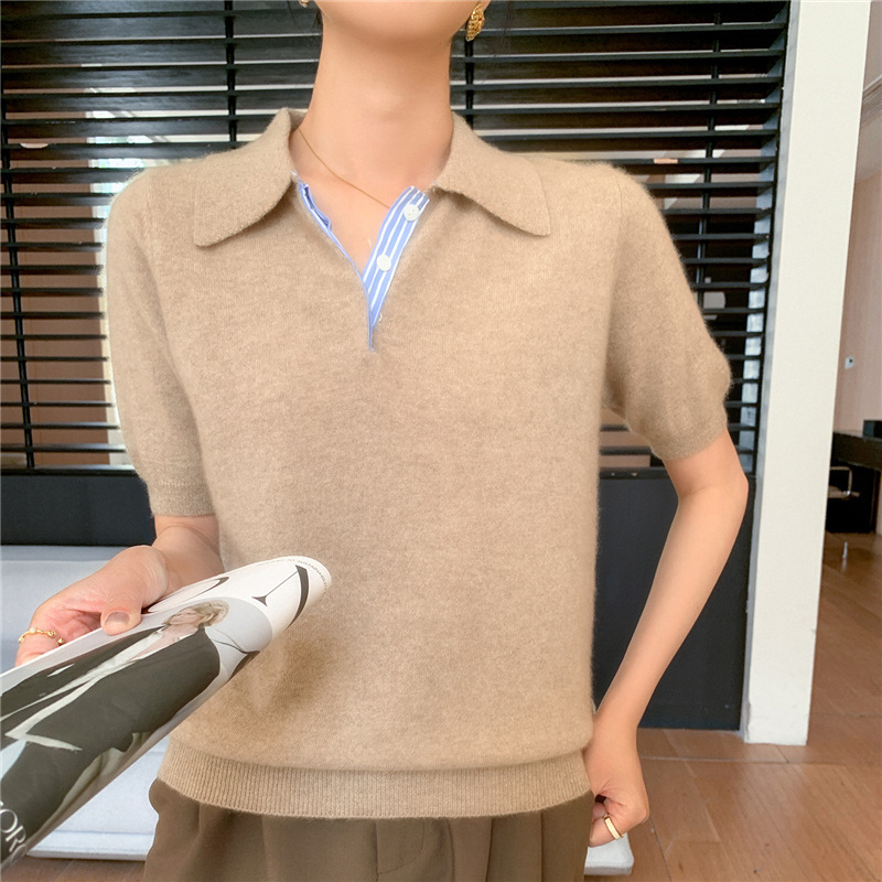 Autumn Winter Women Sweater 2025 Short Sleeve Knitted Pullovers Fashion Polo Collar Cotton Korean Solid Under Shirt Jumpers