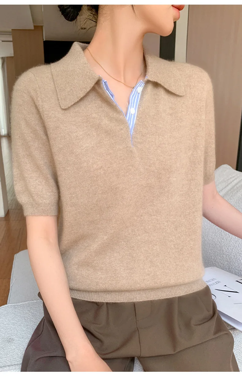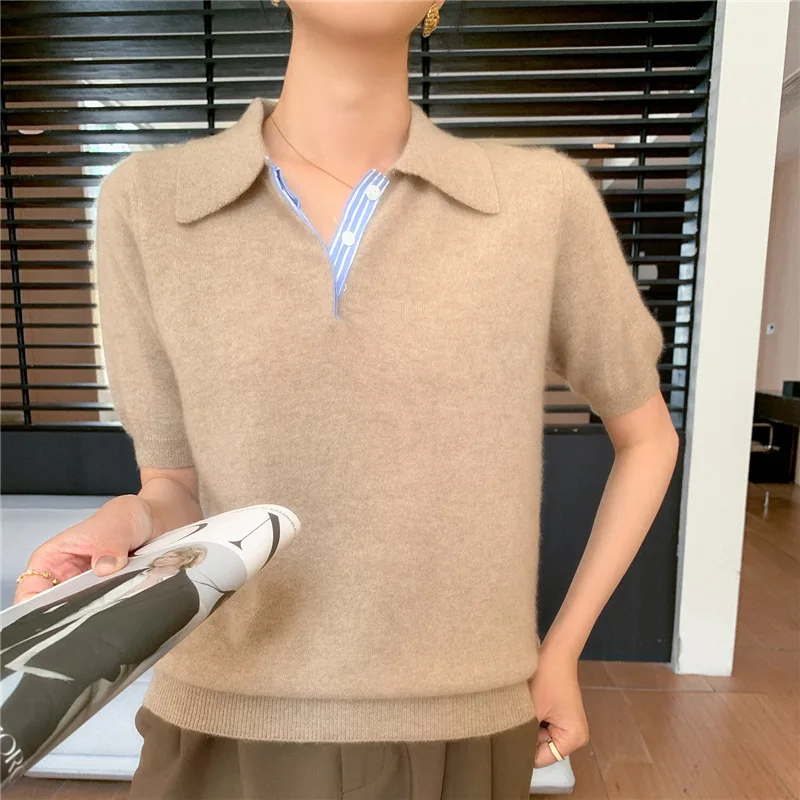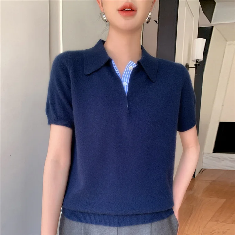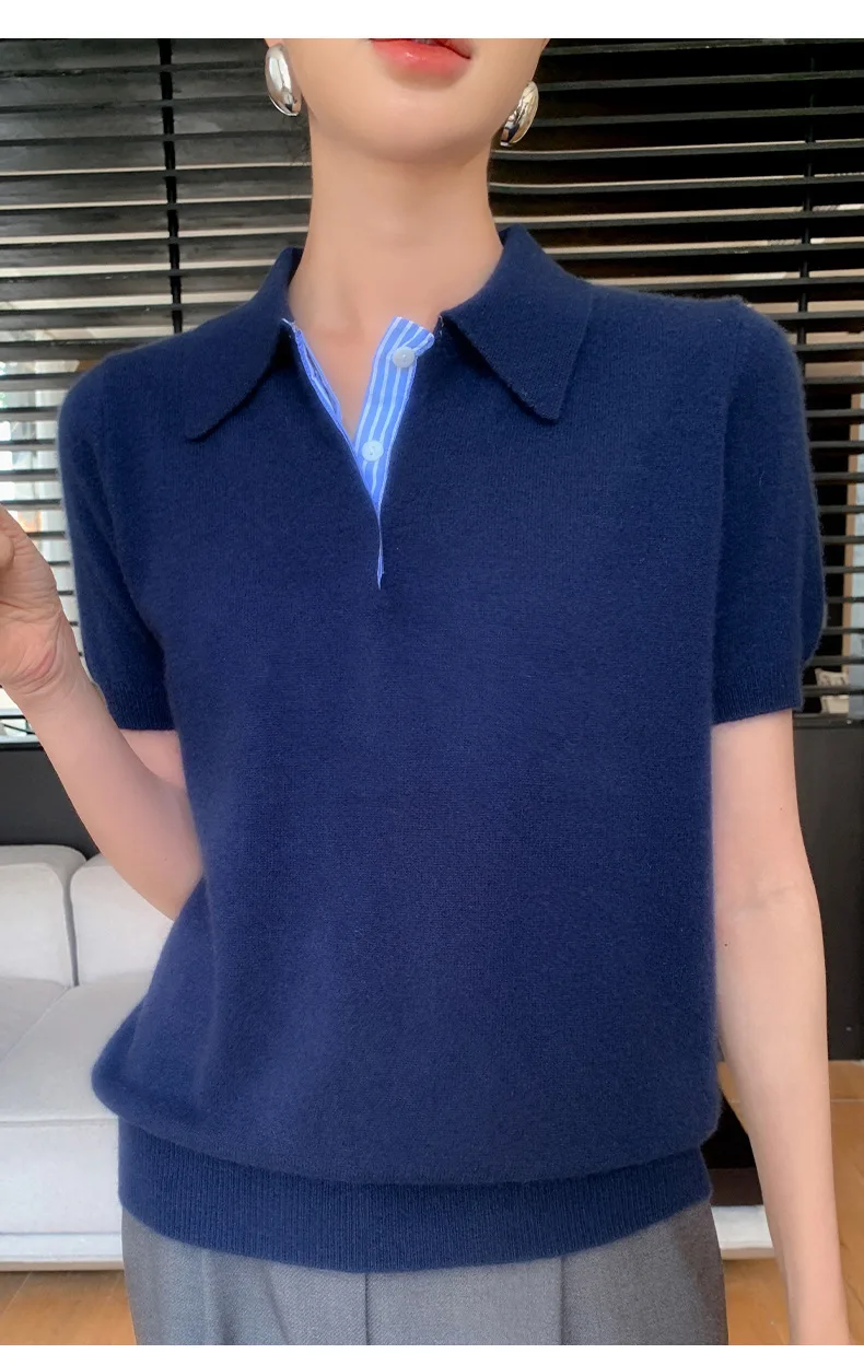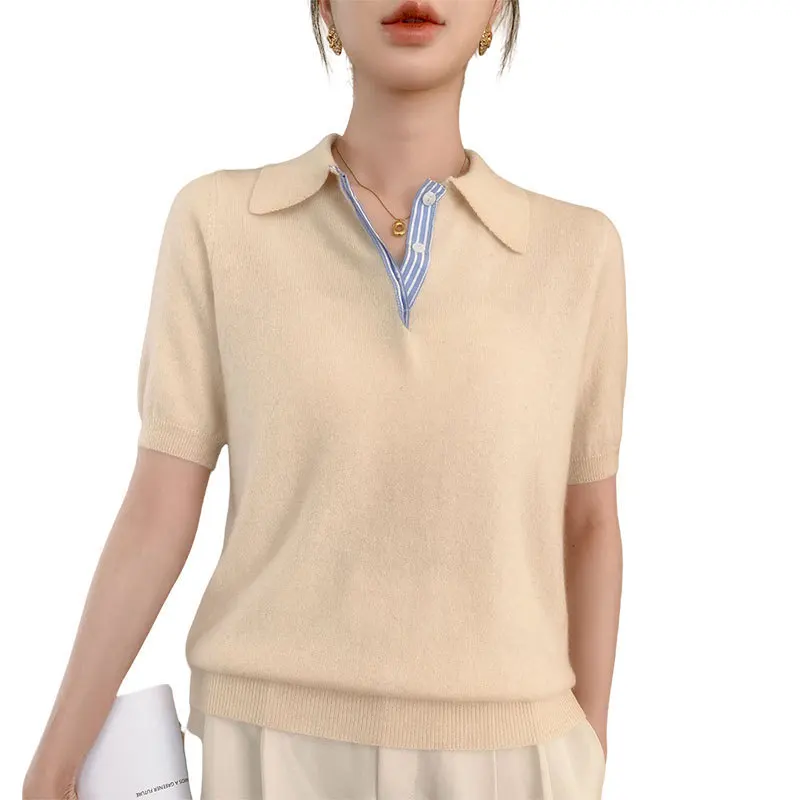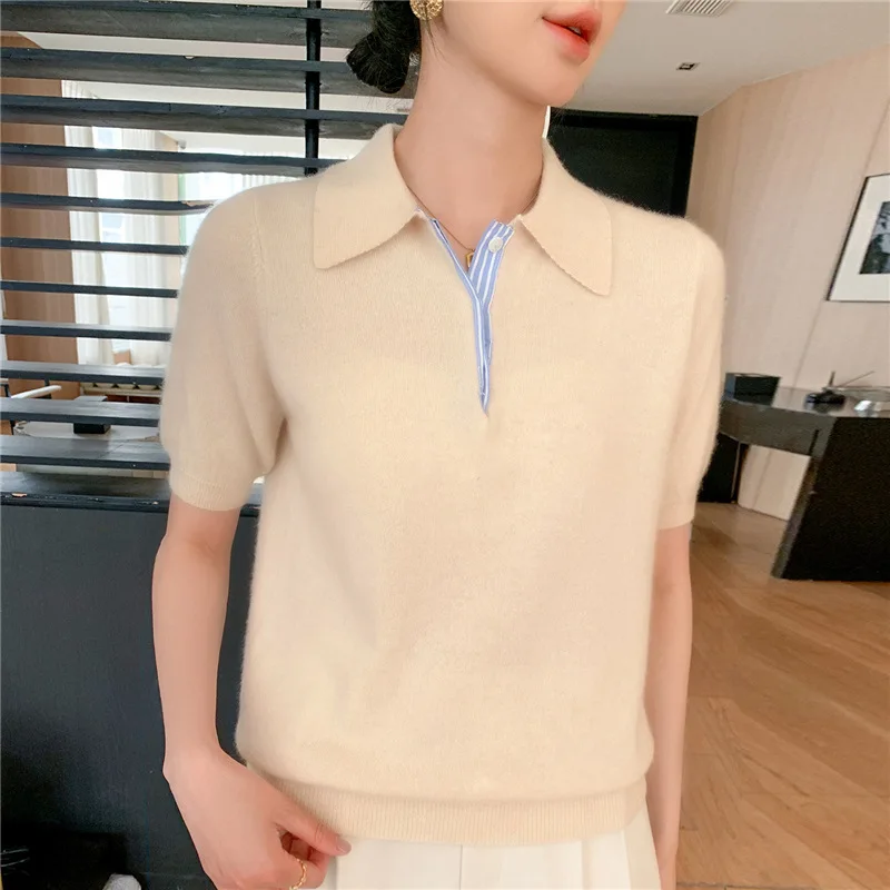 Autumn Winter Women Sweater 2025 Short Sleeve Knitted Pullovers Fashion Polo Collar Cotton Korean Solid Under Shirt Jumpers