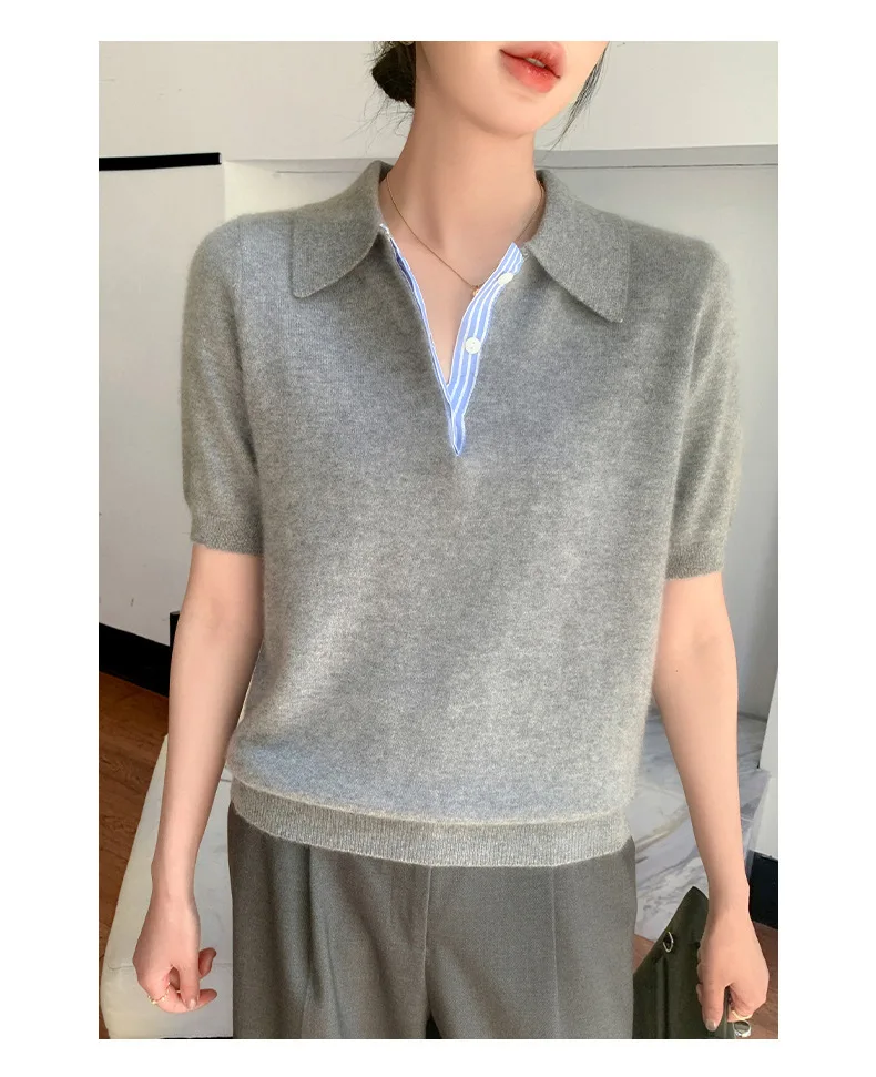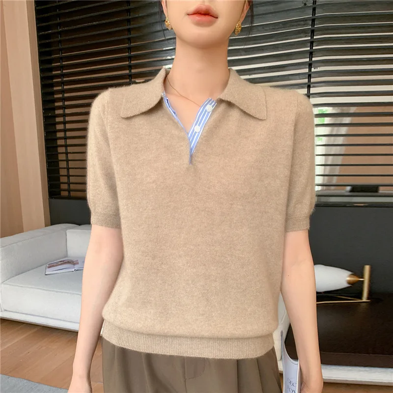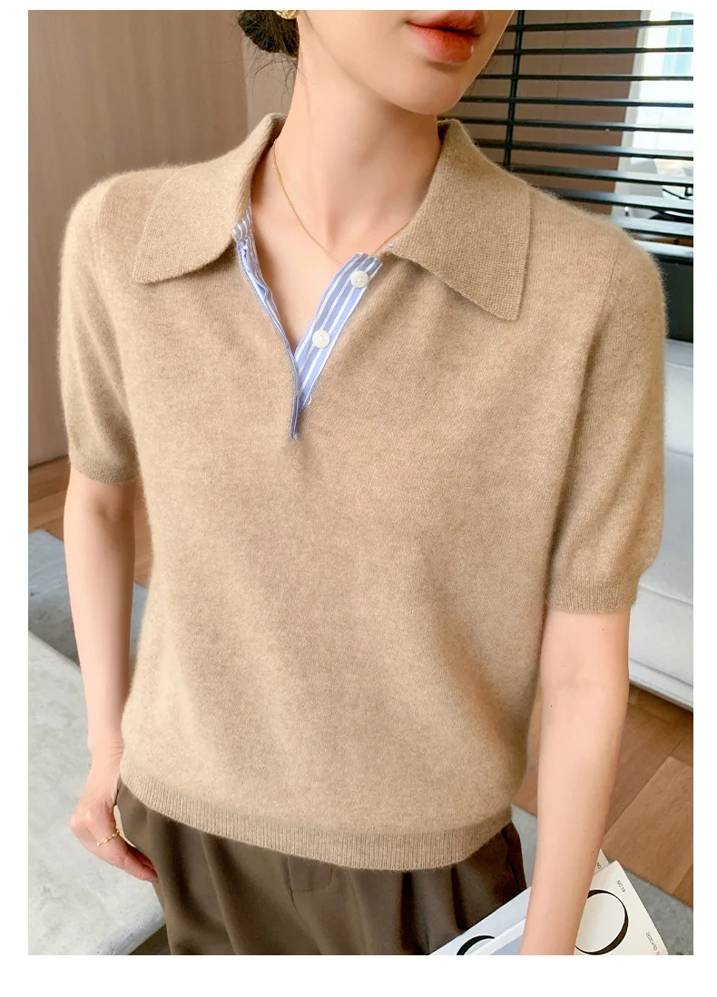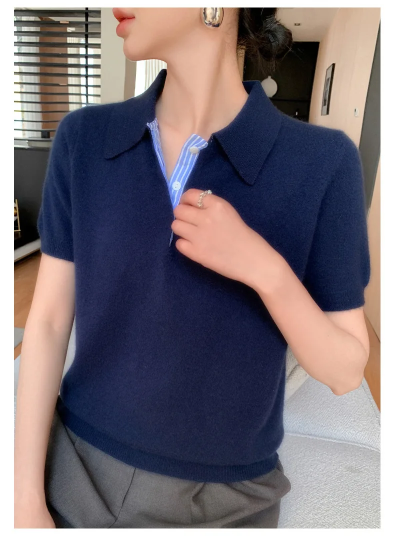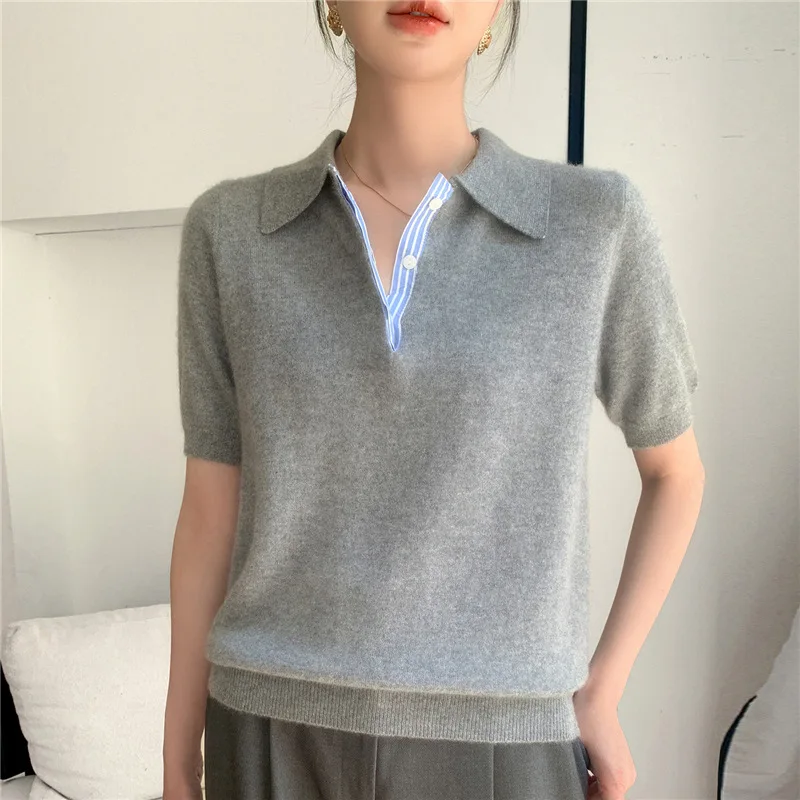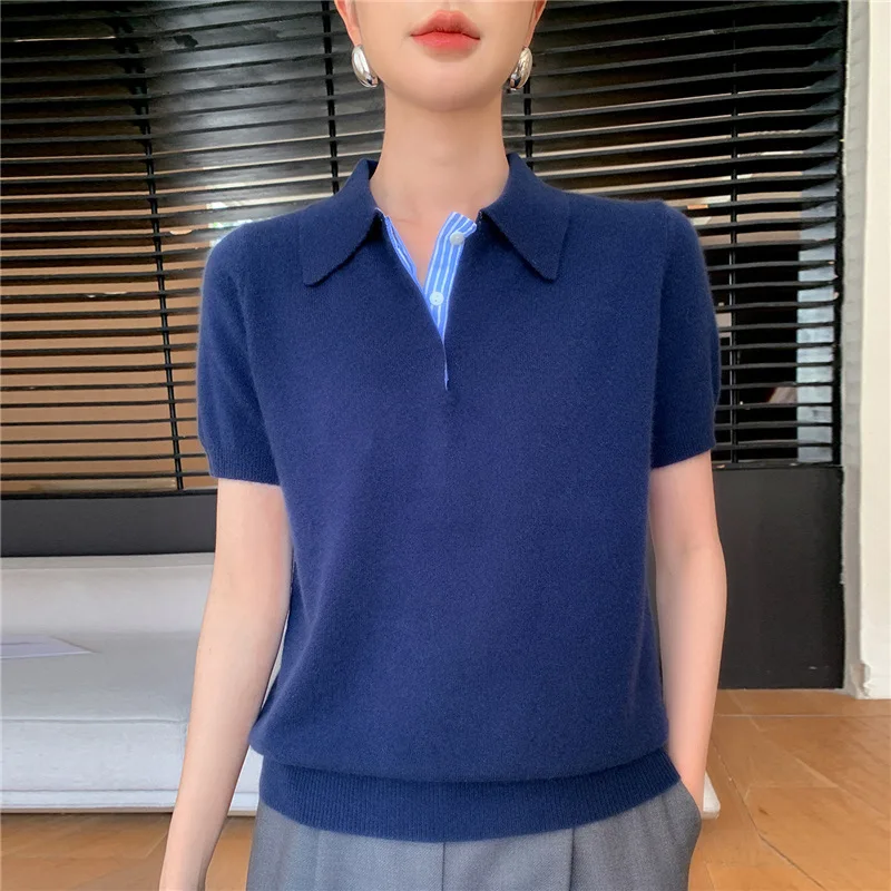 Autumn Winter Women Sweater 2025 Short Sleeve Knitted Pullovers Fashion Polo Collar Cotton Korean Solid Under Shirt Jumpers