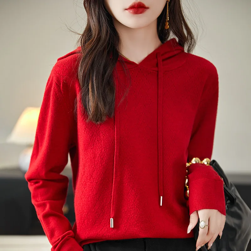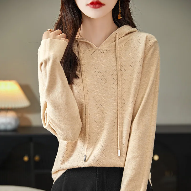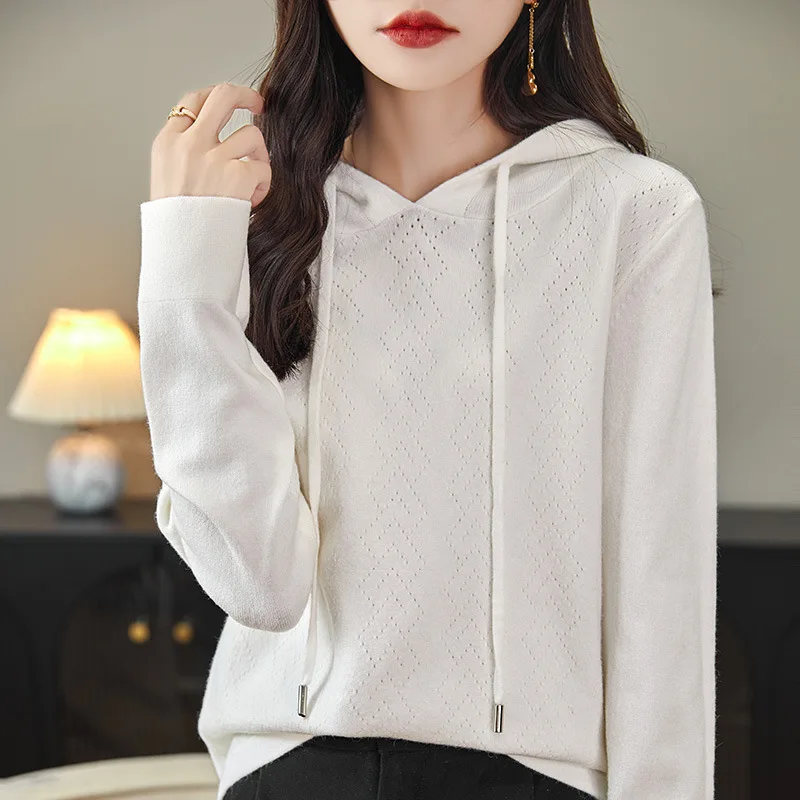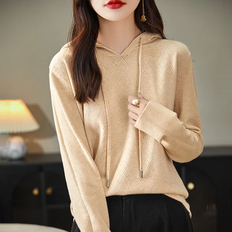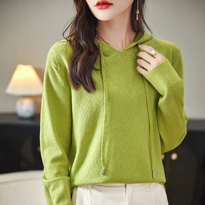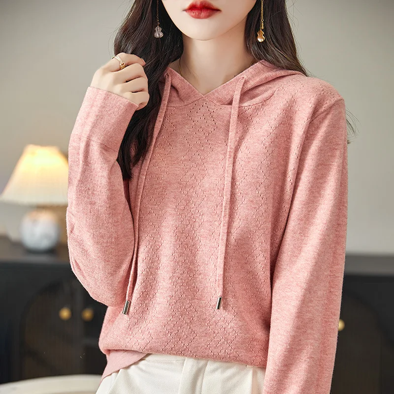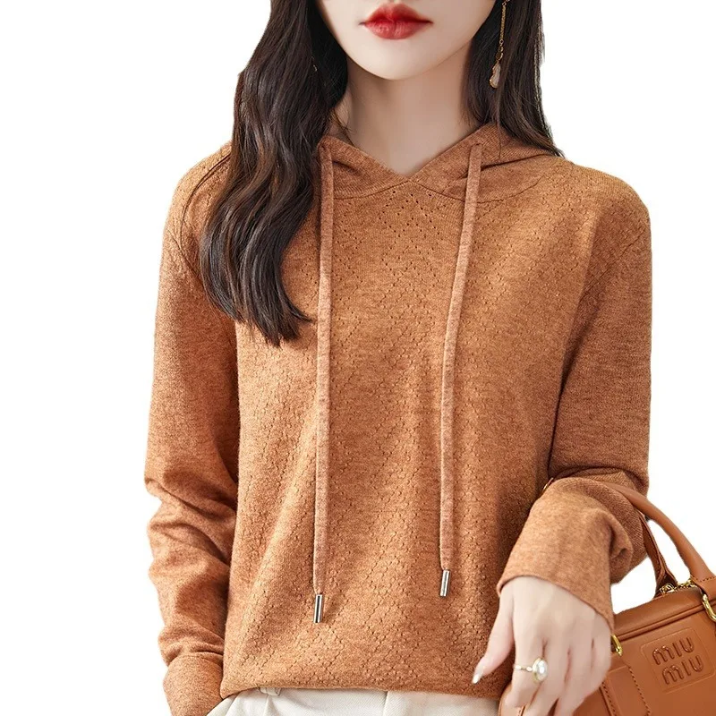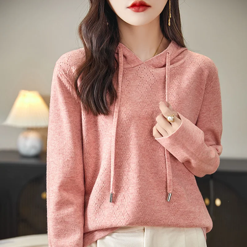 Autumn Winter Women Sweater Solid Hollow Out Jumpers Long Sleeve Hooded Pullovers Korean Fashion Loose Casual Knitted Sweaters