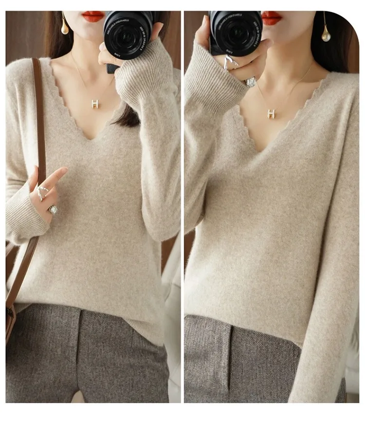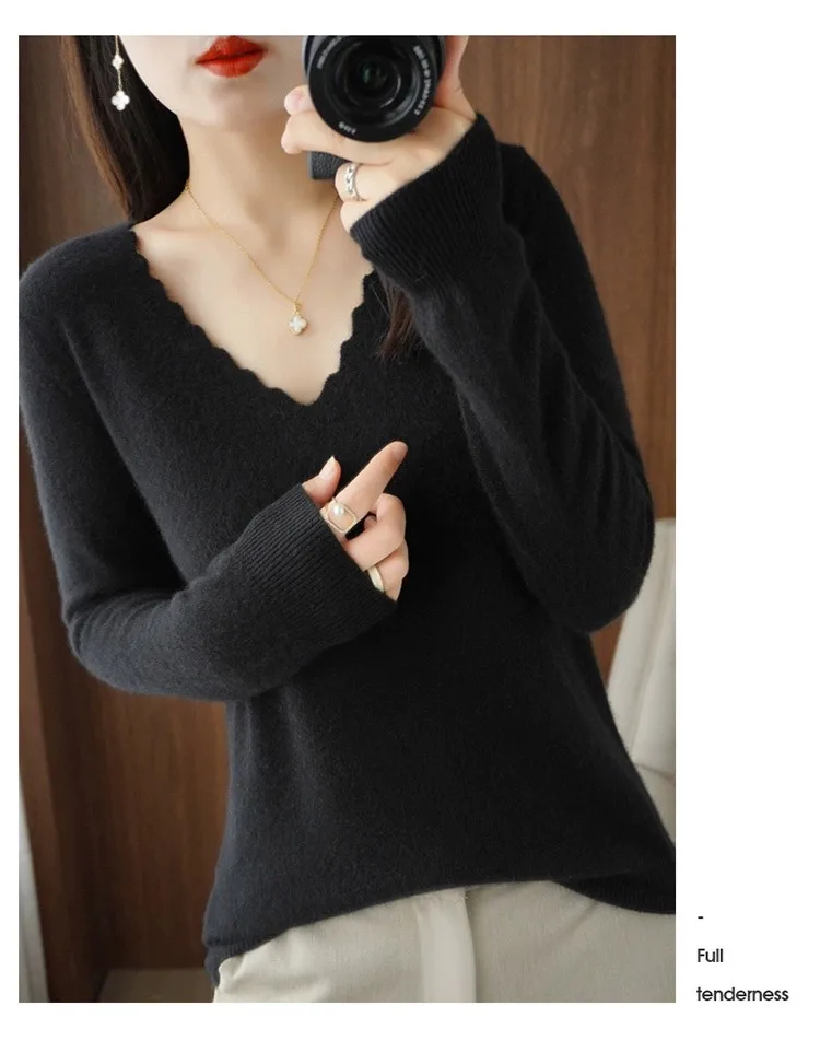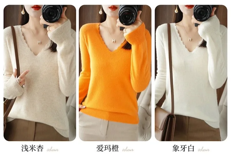 Autumn Winter Women Swewter V-neck Long Sleeve Kniited Tops Casual Warm Bottoming Shirt Fashion Korean Pullovers Soft Knitwear