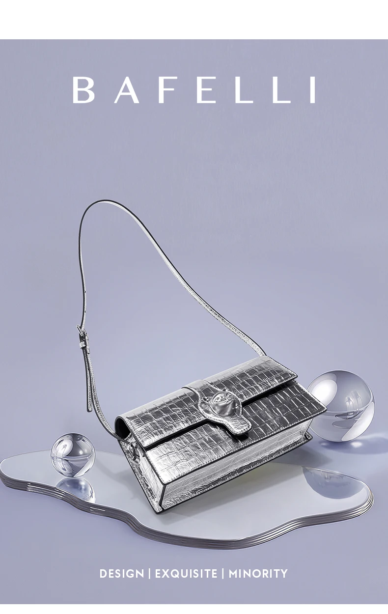 BAFELLI 2025 NEW WOMEN’S LUXURY BAGS CAT BRAND FASHION HANDBAG SILVER LEATHER CLUTCH STYLISH EVENING CASUAL PURSE HIGH QUALITY